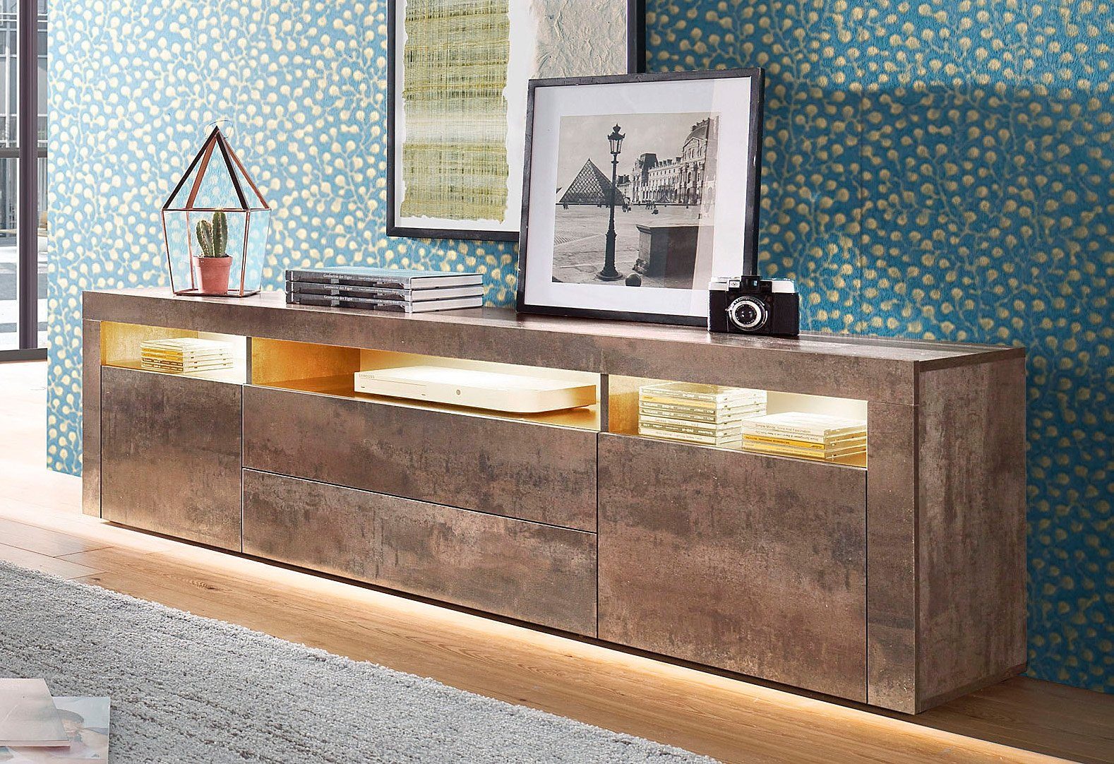 Tv Schrank Lowboard Andrina Korpus In Anthrazit Matt Front Im Rost Antik Industrie Design 135x49x35cm Mit Push To Open Technik Made In Germany Amazon De Kuche Haushalt
