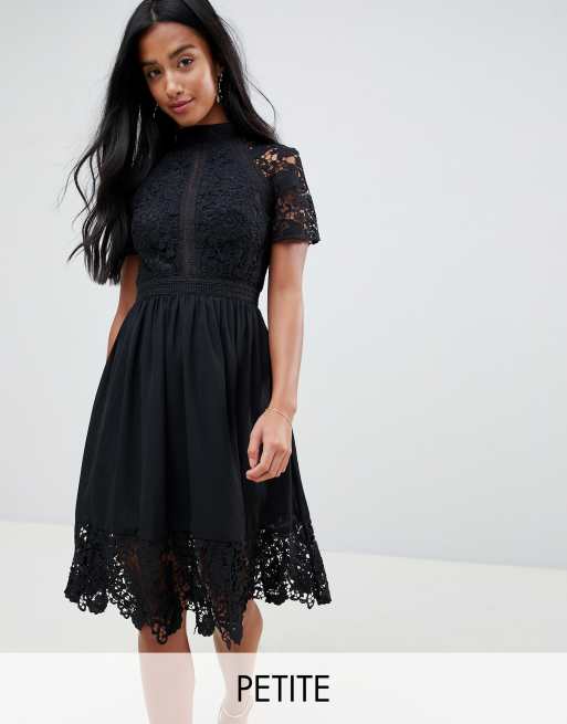 Chi Chi London Petite Lace Detail Skater Dress In Black Asos