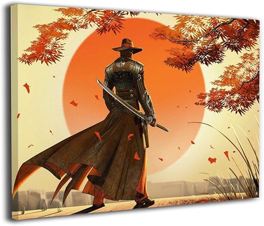 Serity Artwork Fantasy Samurai - Cuadro con marco de pintura japonesa sobre lienzo para la pared de la oficina, decoración del hogar, imágenes, obras de arte modernas para colgar en la habitación,