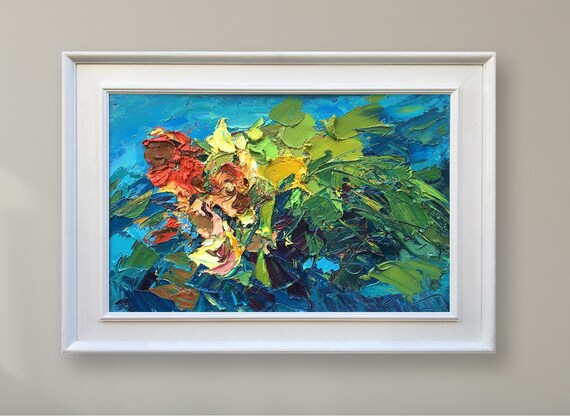 Abstract bloemen schilderij op doek originele kunst bloemen | Etsy